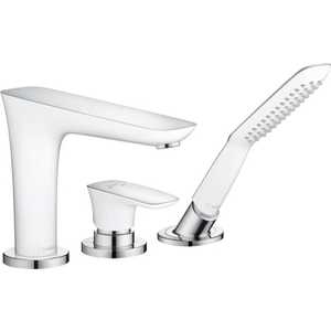 Единица измерения: шт. • Размер: 239х179х70 мм • • Смеситель монтаж на край ванны, на 3 отверстия, • • Характеристики: • • * в набор входят: рукоятка, керамический картридж, излив на ванну, ручний душ (# 28558000) и защита от обратного тока воды • * максимальная длина вытяжения шланга 1,10 м • * цвет — белый/хром • • Производитель: Hansgrohe • Страна: Германия • Коллекция: PuraVida