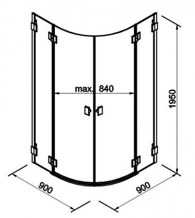 Душевая кабина полукруглая • Размер 90x90x185 cm. • Раздвижные двери • Закаленное стекло • Профиль серебряный • • Производитель:KOLO • Страна: Польша • Коллекция: FRESH