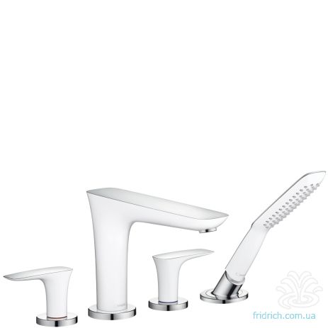 Единица измерения: шт. • Размер: 239х179х70 мм • • Смеситель монтаж на край ванны, на 3 отверстия, • • Характеристики: • • * в набор входят: рукоятка, керамический картридж, излив на ванну, ручний душ (# 28558000) и защита от обратного тока воды • * максимальная длина вытяжения шланга 1,10 м • * цвет — белый/хром • • Производитель: Hansgrohe • Страна: Германия • Коллекция: PuraVida