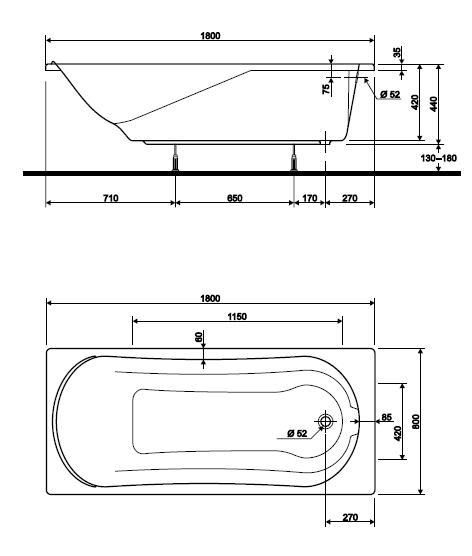 Производитель: KOLO • Страна: Украина • Коллекция: Diuna • • Описание: • Размер 170х75 см • Вес 22 кг • Вместимость 170 л. В комплект входят ножки SN7