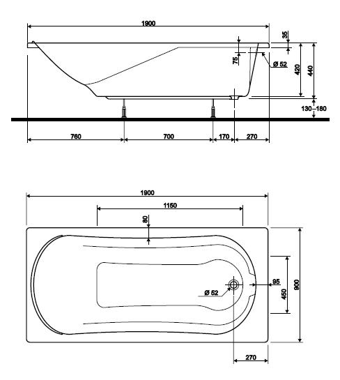 Производитель: KOLO • Страна: Украина • Коллекция: Diuna • • Описание: • Размер 170х75 см • Вес 22 кг • Вместимость 170 л. В комплект входят ножки SN7