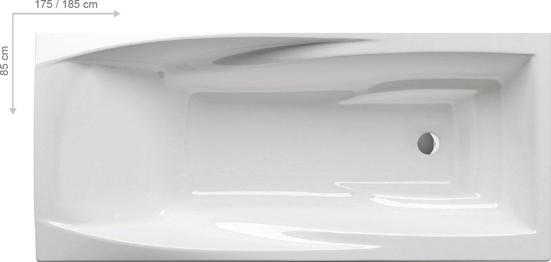 акриловая прямоугольная ванна, в размерах 175/185 х 85 см, подходящая для установки оригинальной гидромассажной системы